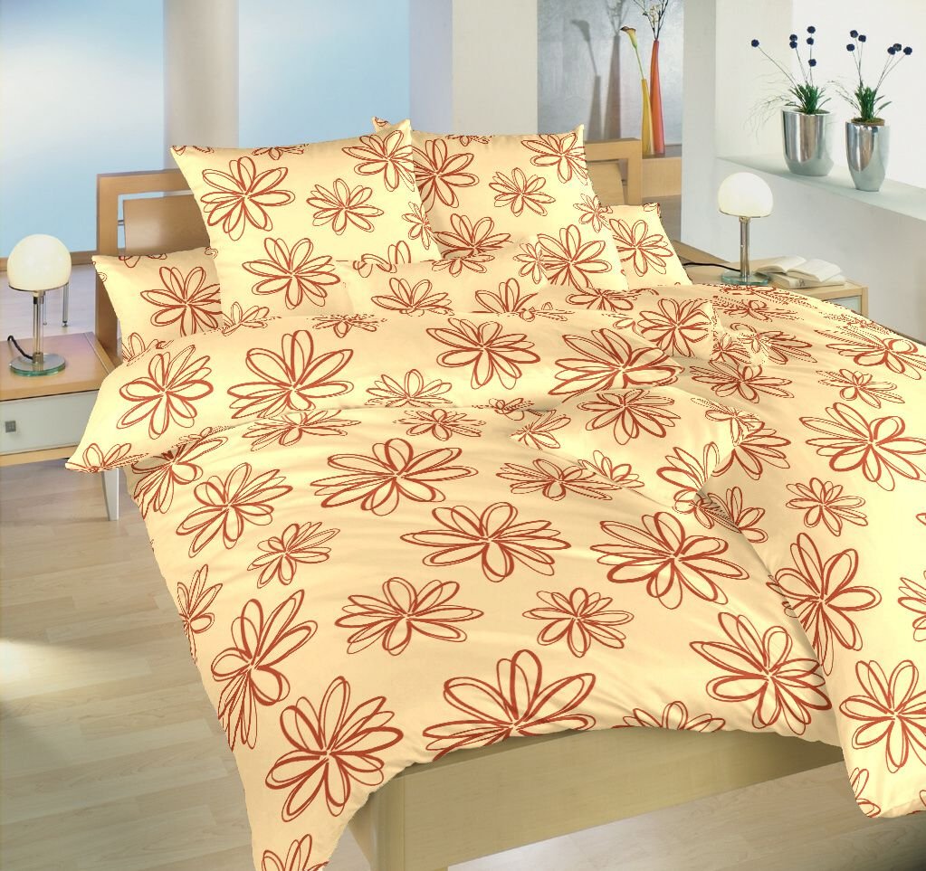 Kvalitné krepové obliečky s abstraktnými kvetmi na svetlom podklade.