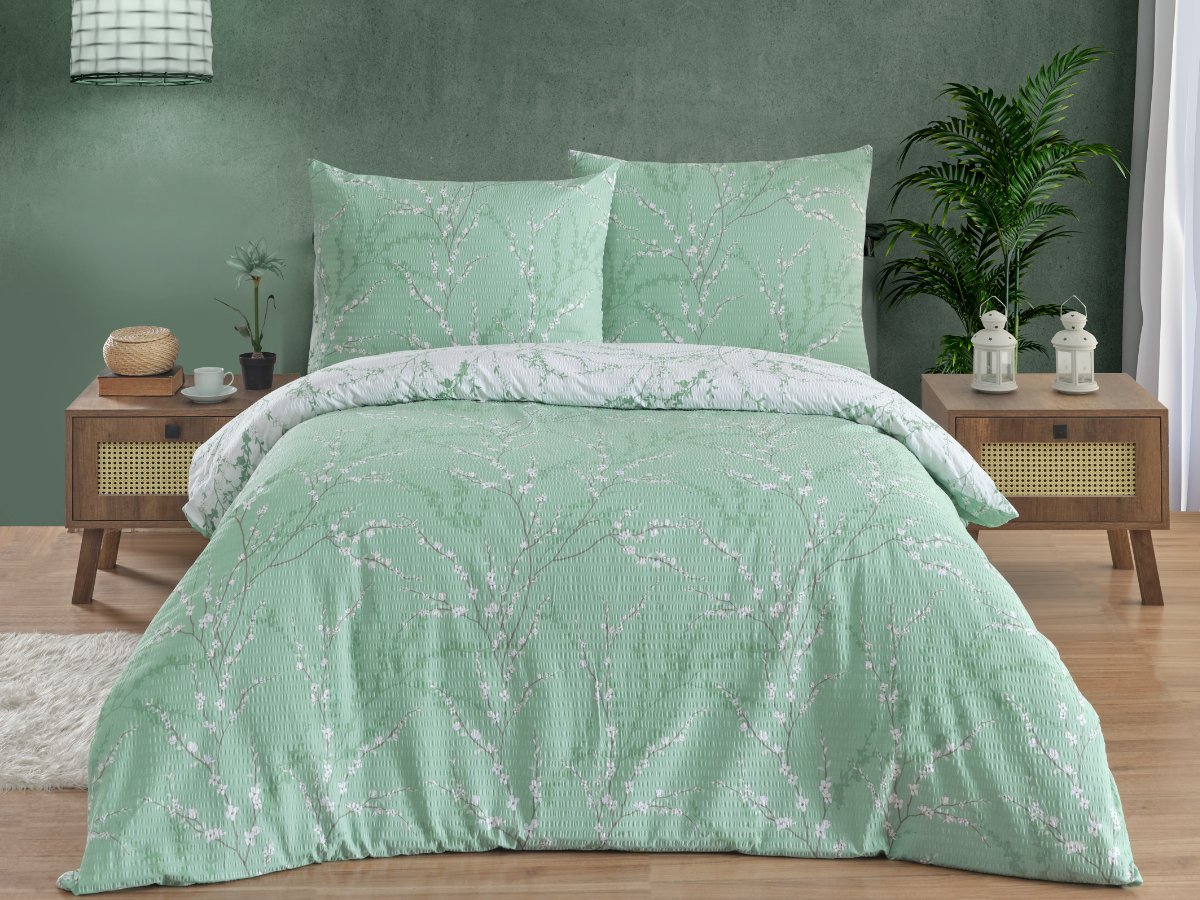 Povlečení je vyrobeno z velmi jemné 100% bavlněné tkaniny o plošné hmotnosti tkaniny 130g/m2. Krepování je vytvořeno pomocí speciální úpravy. Díky tomuto krepování se povlečení nemusí žehlit. Tkanina má vysokou hustotu velmi jemných přízí a pro tyto své vlastnosti je velice jemná a příjemná na omak. Ložní povlečení je vyrobeno s rozměrovou rezervou pro vysrážení po vyprání. Povlečení je vyrobeno v ČR s oblíbeným zipovým uzávěrem.