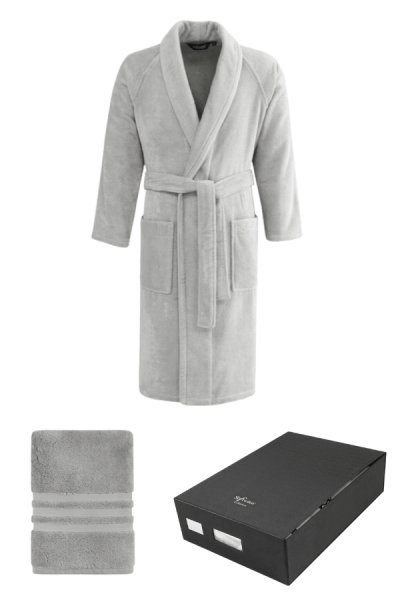 Soft Cotton Luxusní pánský župan PREMIUM s ručníkem 50x100 cm v dárkovém balení L + ručník 50x100cm + box Světle šedá. Rozměry produktu Soft Cotton Luxusní pánský župan PREMIUM s ručníkem 50x100 cm v